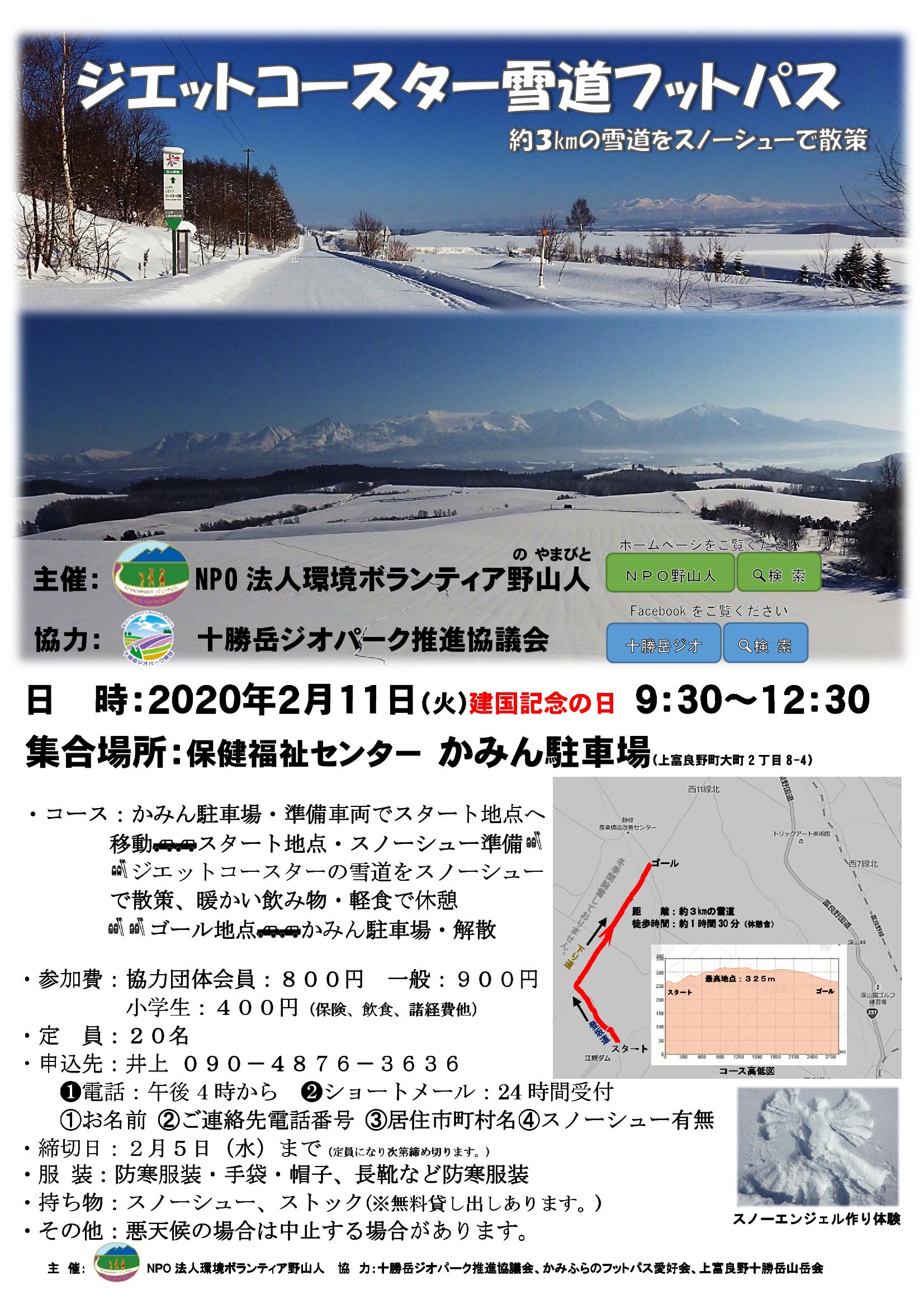 フットパス通信2020-1号ジエットコースターの雪道フットパス 2020年2月15日 令和2年フットパス始め「ジエットコースター雪道フットパス2020(令和2)2月11日」 を開催しました。ご覧ください。